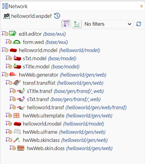 Dans le réseau d'items qui suit, nous allons expliquer le fonctionnement commun aux deux générateurs du modèle helloworld.