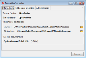 Fermer, en bas de la fenêtre, pour quitter la fenêtrePropriétés d'un atelier.