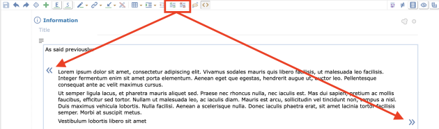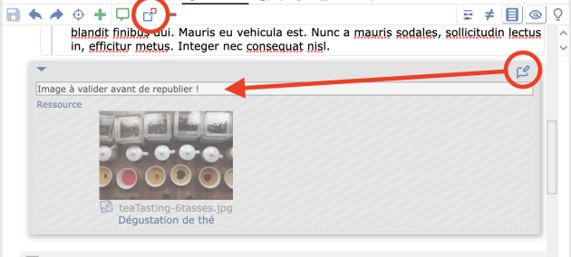 button allows you to insert a resource item between two paragraphs of the text for enrichment and illustration purposes: