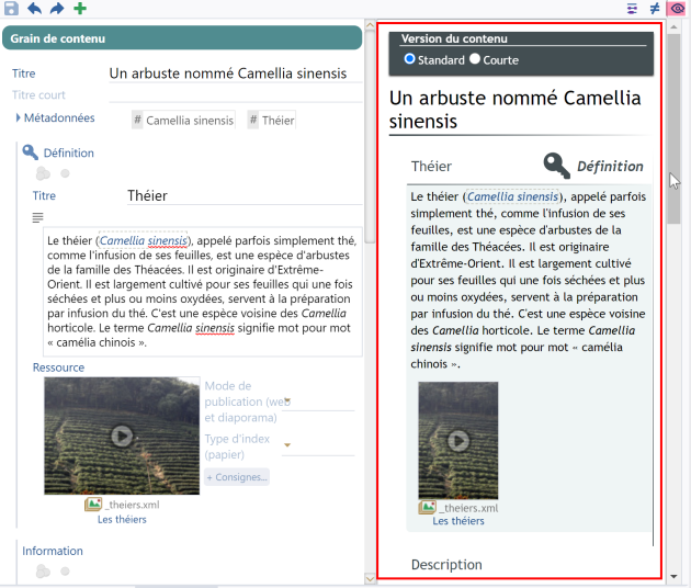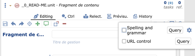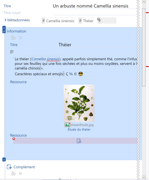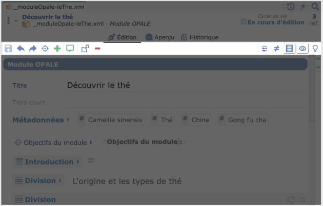 Show/hide the metadataSpecific termthat enables to specify the language).Hide/show the text structure⚓