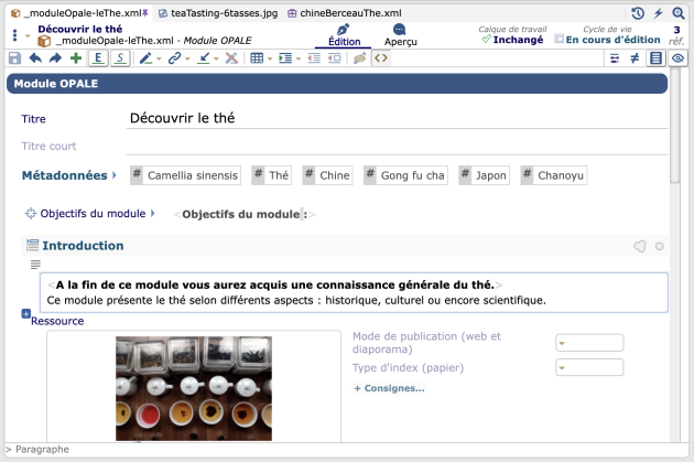This tab bar is not available when using the application in plan mode where the items editing interface is mono-item (impossible to open several items simultaneously; browsing is done only by the document plan or by following inter-items links).