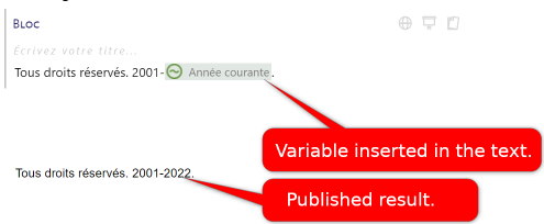 Variable in the text.- Place your cursor at the place in the text where you want to insert a